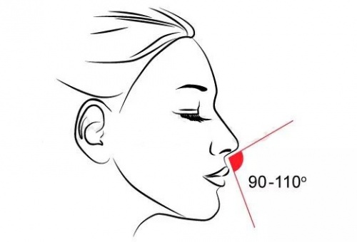 鼻唇角顾名思义是鼻子和嘴唇之间的角度,其实也就是人中与鼻尖位置的夹角。一般理想的鼻唇角角度是男性90~95度左右,女性95~105度。