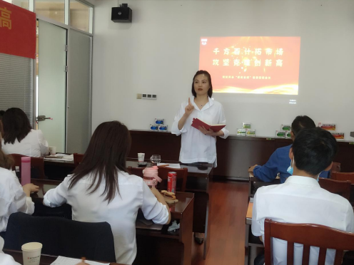 分管营销副总经理梁立艳对一季度的经营情况进行详细分析,并就二季度营销工作重点及要求进行阐述和指导。梁总表示,继续坚持落实“三个不变”,“三个改变”。三个不变即控制营销方法不变,聚焦策略不变及渠道开发方向不变;三个改变即价格调整到位、促销政策调整、人员思想改变。