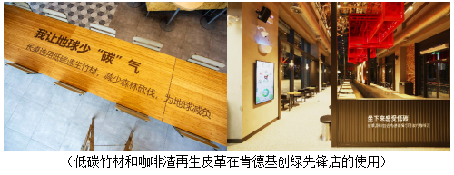 2022年4月,值第53个世界地球日之际,肯德基宣布在北京、杭州两地落地首批肯德基创绿先锋店——“小绿店”。餐厅通过集成采用屋顶光伏、IOT物联网等节能减碳技术,推动绿色环保科技在餐厅实际运营中应用,将为消费者打造一个全方位绿色互动体验空间,进一步倡导环保的生活理念。肯德基这一先锋举措不仅是其“自然自在”可持续发展理念的大胆实践,也是品牌为环保节能、助力碳中和而做出的新尝试。