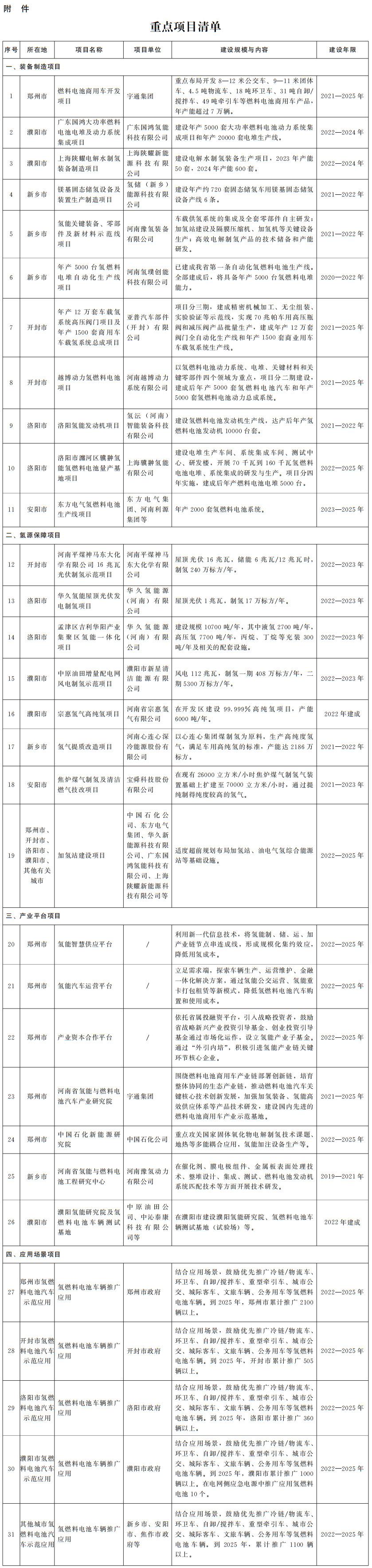 1.郑州市。郑州市依托宇通客车,发挥氢能与氢燃料电池汽车技术创新能力和示范运营先进经验,高位谋划、超前布局,联合清华大学、同济大学、郑州大学等高校、科研院所,以及正星氢电、日立信、亿华通等产业链优势企业,围绕燃料电池商用车,培育整体协同生态产业链,驱动关键核心技术创新发展,加强加氢装备等产品技术研发,建设河南省氢能与燃料电池汽车产业研究院,打造国内领先的燃料电池商用车产业示范基地、氢能产业关键技术研发和科技创新示范区。(责任单位:郑州市政府)