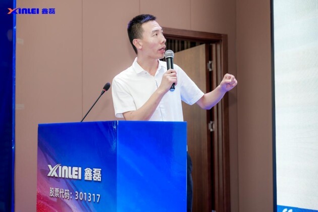 鑫磊山西大客户事业部总经理段民刚发表了《鑫突破,磊增长》的主题演讲。他详细介绍了双碳政策下空气源热泵行业迎来的巨大发展机遇,同时分享了山西政府出台支持空气源热泵应用的政策。