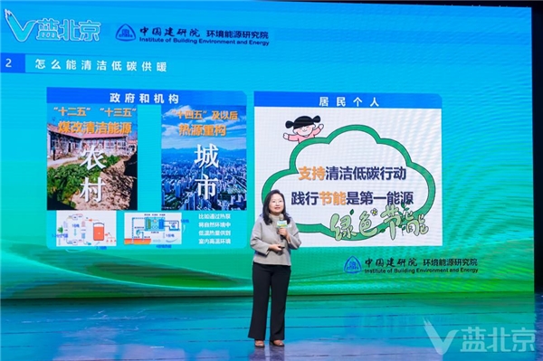 中国建筑科学研究院环能科技供热中心主任袁闪闪以《清洁低碳供暖 保卫首都蓝天》为题围绕清洁低碳供暖的概念、路径和未来发展方向,向大家做了系统阐释。