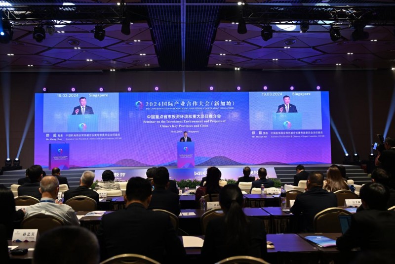 3月19日下午,由中国机电产品进出口商会、新加坡中华总商会、新加坡中国商会共同主办的中国重点省市投资环境和重大项目推介会在2024国际产业合作大会期间于新加坡成功举办。