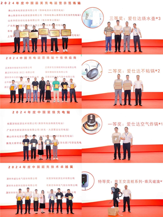 除此之外,“奥王之夜”暨2024中国星级充电场站颁奖盛典如期举行,经过初步审核、网络投票评选、线下专业评委审议等环节,最终评选出了2024年度中国最美充电运营示范场站、2024年度中国星级充电场站、2024年度中国充电运营场站十佳供应商、2024年度中国超充技术卓越奖4大奖项。