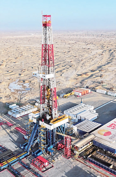 我国首口设计井深超万米的科学探索井中国石油深地塔科1井。 新华社记者 李响摄