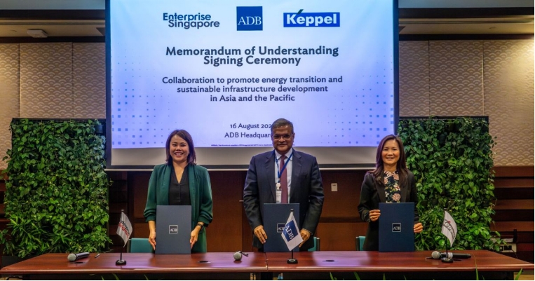 吉宝有限公司基础设施首席执行官林裕玲(Cindy Lim)女士、亚洲开发银行市场解决方案副行长巴尔加瓦·达斯古普塔(Bhargav Dasgupta)先生和新加坡企业发展局局长丘晓晴(Cindy Khoo)女士于菲律宾马尼拉大都会的亚洲开发银行总部签署了谅解备忘录。