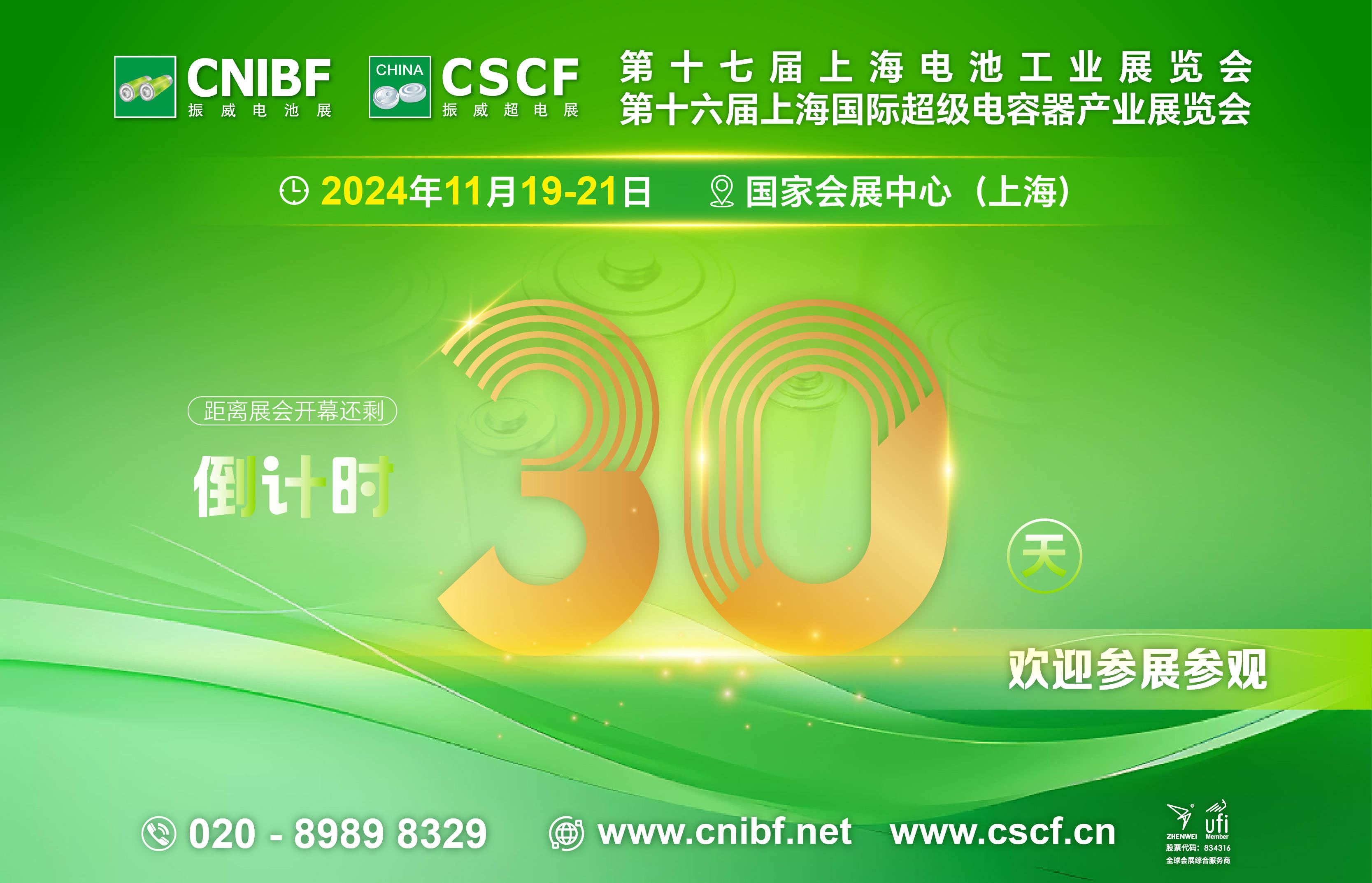第十七届上海国际电池工业展览会(简称CNIBF)、第十六届上海国际超级电容器产业展览会(简称CSCF)将于2024年11月19-21日在上海的国家会展中心举办,展会将汇聚上百余家行业知名企业前来参展,预计专业观众人数将达上万人次,现距离展会开幕仅剩30天!找新品、觅商机、看前沿!邀您相约上海,共话行业,共谋发展!
