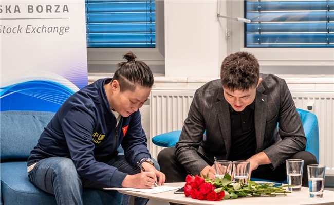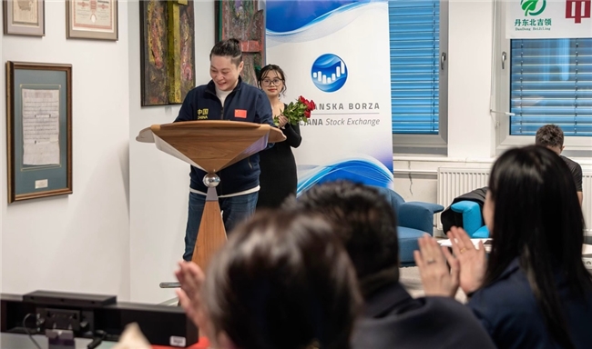 此时此刻,9点58分与15点58分紧密握手,直播画面上胡平董事长与李婉莹女士共同敲响“上市铜锣”。 这是盛典最具象征意义的时刻,这无疑标志着丹东北吉领农业发展有限公司在卢布尔雅那证券交易所正式挂牌上市。(文/陈新飞)