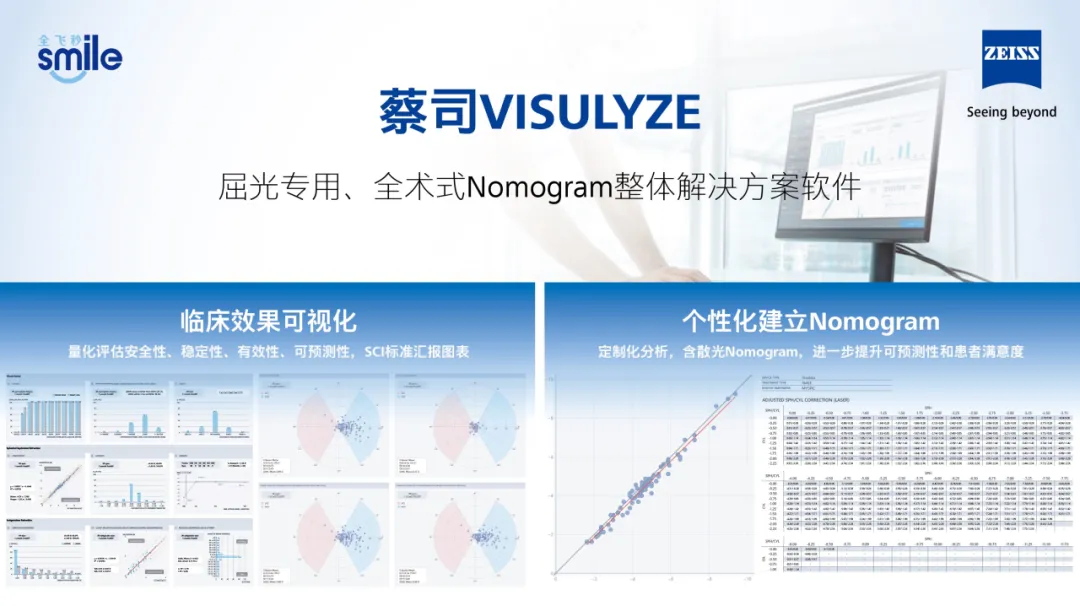 蔡司VISULYZE软件基于大数据的“不断训练”和“深度学习”,可消除验光设备差异、验光师习惯差异、手术设备差异、医生手术习惯差异——四差归零,形成个性化的Nomogram,为患者定制更科学、更精准的手术矫正参数,提升治疗结果的可预测性与精准性,更贴近每一个患者适宜的理想矫正目标值。