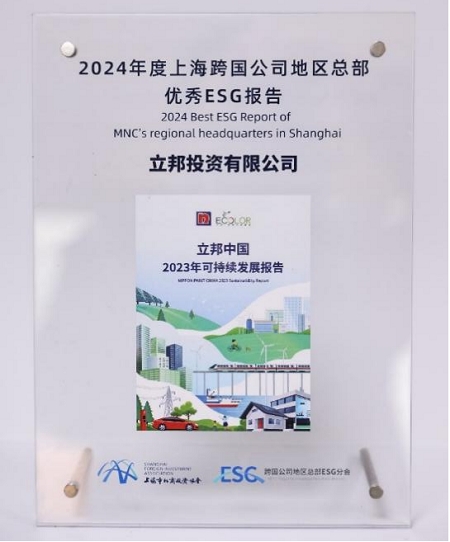 立邦中国获评“上海跨国公司地区总部优秀ESG报告”