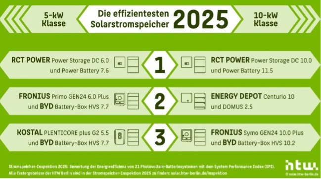 日前,由HTW Berlin发起的ENERGY STORAGE INSPECTION 2025(储能检测报告2025)结果正式揭晓。阿诗特能源(RCT Power)再度斩获“最高效储能系统”头衔,在SPI评分的5kW、10kW效率等级中双双登顶,成功卫冕双料冠军。这是阿诗特能源连续第六年蝉联该国际荣誉,也是其技术领跑全球储能领域的又一力证。