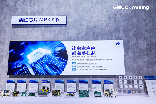 美芝、威灵在此次展会中还展示了应用于多种场景的电子膨胀阀、家电芯片、主板等产品。在电子膨胀阀方面,M系列兼具高可靠性和流量控制精度,适用于家用一拖一空调、轻商多联机和大型商用空调;W系列专为室内机设计,重点优化了降噪表现;L系列则适用于多联机的外机系统。在家电芯片领域,美仁芯片展示了包括MR88F001主控MCU等明星产品与解决方案,涵盖空调主控板、洗衣机主控板、冰箱主控板、智能马桶及遥控器主控板等应用场景。