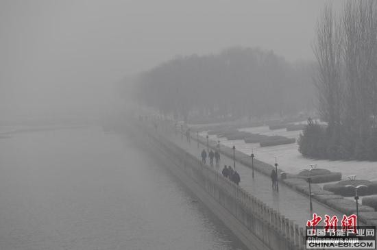 资料图:2017年2月15日,北京当日迎来新一轮雾霾污染高峰,主要城区空气污染指数普遍逼近或超过300,当地也在14日10时发布了空气重污染黄色预警。 中新社记者 崔楠 摄