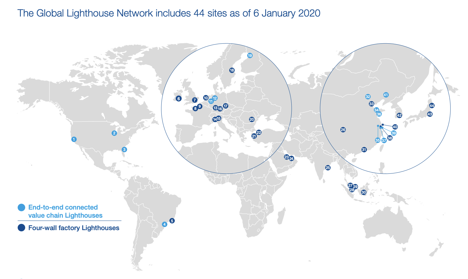 “灯塔工厂”网络(Global Lighthouse Network)是全球先进制造领域最具影响力的评选之一。2018年开始,由世界经济论坛和麦肯锡咨询公司共同遴选全球制造业范围内应用第四次工业革命尖端技术、堪为全球表率的先进制造基地,截至目前共有44家入选。