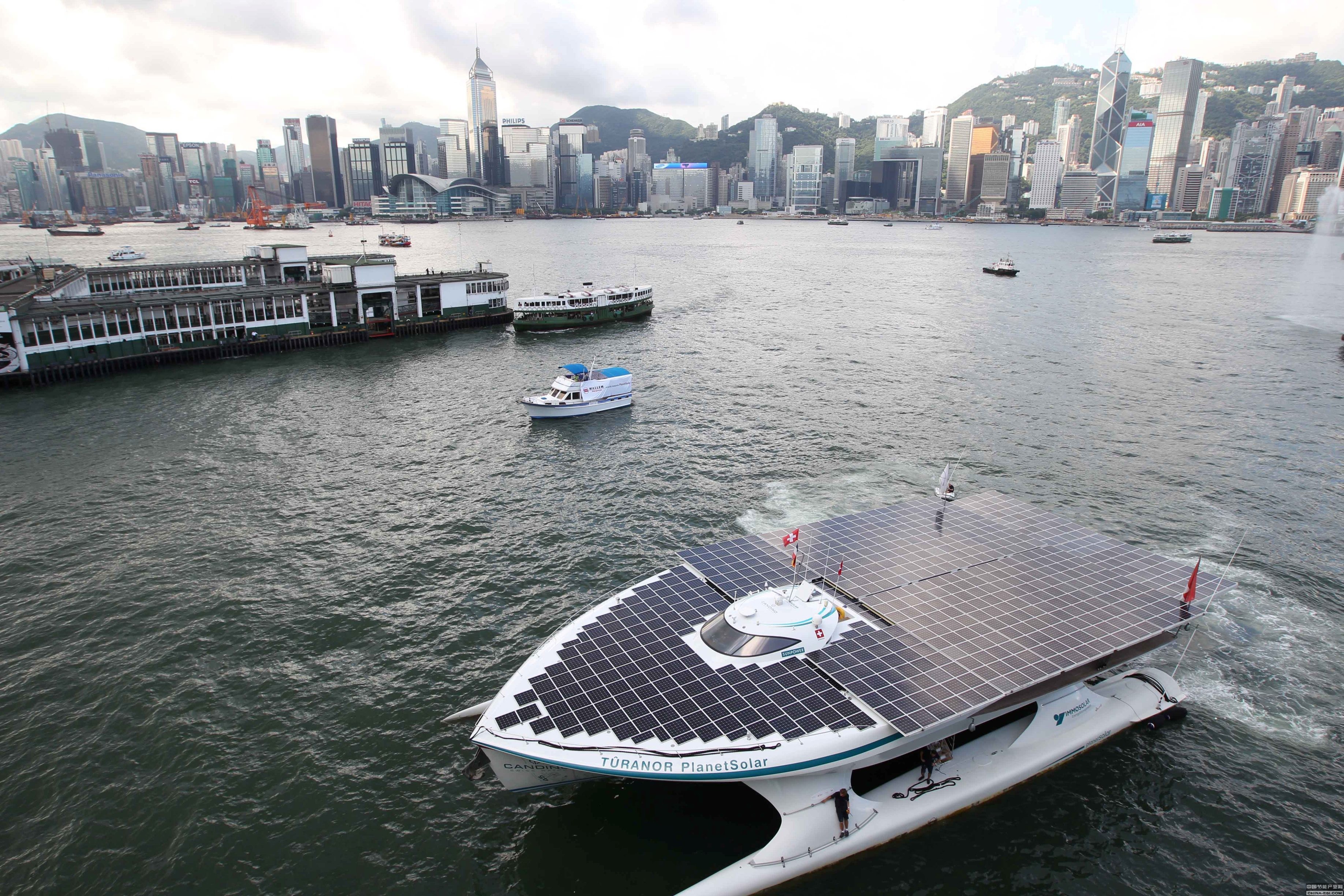 MS TURANOR PlanetSolar是长达31米的双体船,铺设了500平方米的太阳能电板。该艘双体船于2010年9月从法国南部出发,展开环球航行,除了推广太阳能,也展示来自瑞士的可再生能源产品如何能够为沿线的造船厂及零件生产商带来崭新商机。抵达香港前,该船已横渡大西洋及太平洋,访问了超过七个国家,包括美国、墨西哥、巴拿马、哥伦比亚、厄瓜多尔、澳洲及菲律宾,所停留的港口不少位处赤道,吸收大量阳光。