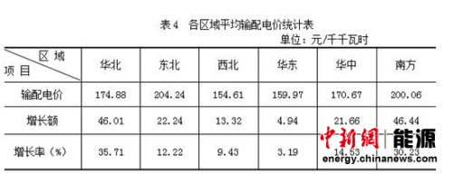 从区域看,东北区域平均输配电价最高,为204.24元/千千瓦时,依次为南方、华北、华中、华东,西北最低,为154.61元/千千瓦时(见表4)。