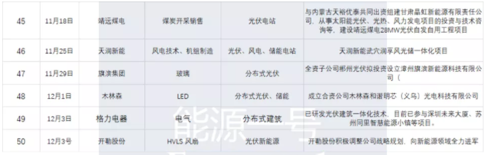 能源一号在梳理数据中也发现另一个亮点:大量公司扎堆进入了分布式产业中。其中有一些著名的上市公司及集团企业如建发股份、龙元建设、京东、顺丰控股、中材国际、凯伦股份、靖远煤电、格力电器、杭萧钢构、创维、塔牌集团等。