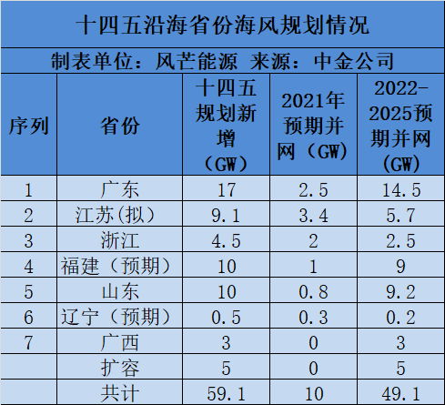 以中金点睛为例,根据其最新研报,沿海6省今年预计新增10GW海上风电。该预测大胆打破常规预测的6-8GW增量空间。