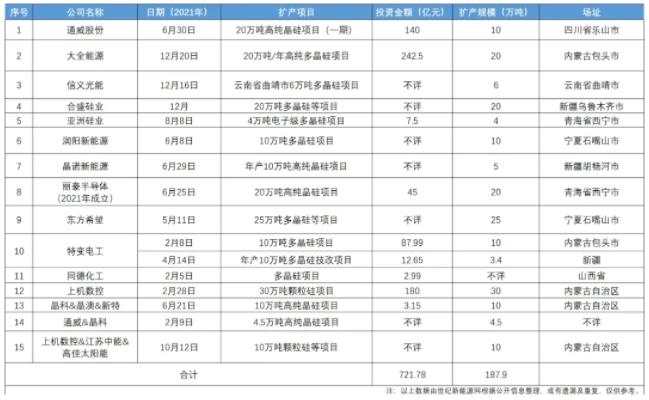 2021年,硅料投资金额超722亿元,产能超188万吨。