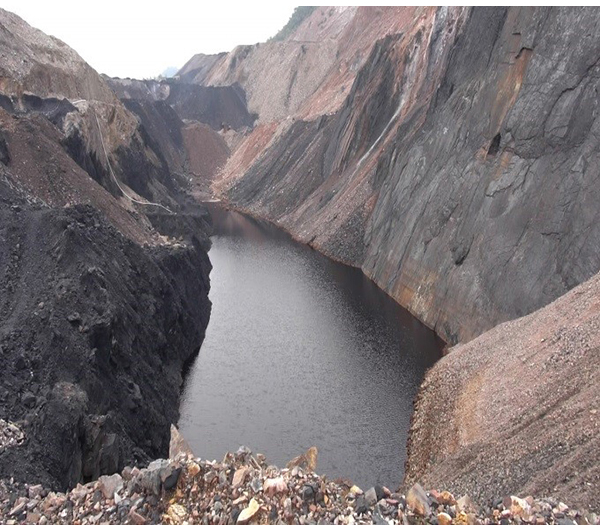 益阳鑫盛矿业有限公司赫山区石笋石煤矿2018年1月正式停产关闭。督察发现,该矿山开采区域形成面积约2万平方米的露天矿坑,坑内积存大量酸性锈红色废水。当地仅采取向矿坑废水灌入石灰浆液的方法,对水中重金属进行沉淀处理,但产生的沉淀物仍然沉积水底,起不到实际效果。