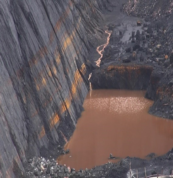 督察还发现,石煤破碎车间被填埋的废水收集池周边沟渠水总镉浓度达到6.6毫克/升,超过《地表水环境质量标准》(GB 3838-2002)Ⅲ类标准限值1319倍;石煤破碎车间附近溪流水总镉浓度0.38毫克/升,超过地表水Ⅲ类标准75倍。由于该公司废水处理站长期超标排放,附近池塘水体总镉浓度1.6毫克/升,超过地表水Ⅲ类标准319倍。另外,该公司矿区已开采区域形成一个露天矿坑,未做任何防渗漏处理,矿坑中长期积存大量酸性锈红色矿坑涌水,积水面积超过6000平方米,水中总镉浓度8.0毫克/升、总锌浓度65毫克/升,分别超过煤炭工业排放标准79倍和31.5倍,对地下水及周边环境构成严重威胁。