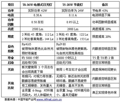 T8-40W 电流0.315A 功率因数0.54 T5-28W 电流0.107A 功率因数0.99