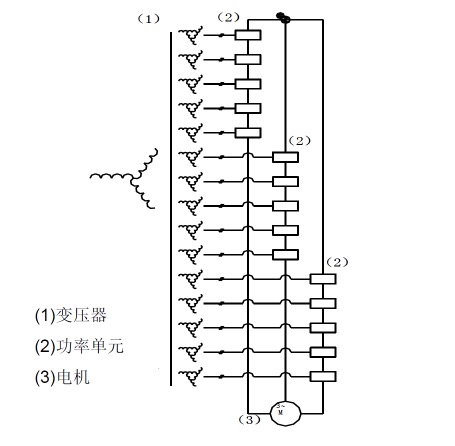 单元串联多电平技术采用功率单元串联电压相加回路,采取变压器多绕组别分组分压整流单元均压,单元电平叠加,通过IGBT逆变桥进行正弦(PWM)控制,可得到单项交流输出,每个功率模块结构及电气性能上完全一致,可以互换。