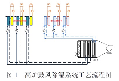 高炉鼓风除湿系统工艺流程见图1。