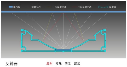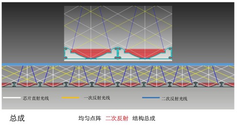 (2)灯箱反射器二次反射技术。利用二次反射技术提高灯箱光照度,降低灯箱功耗。