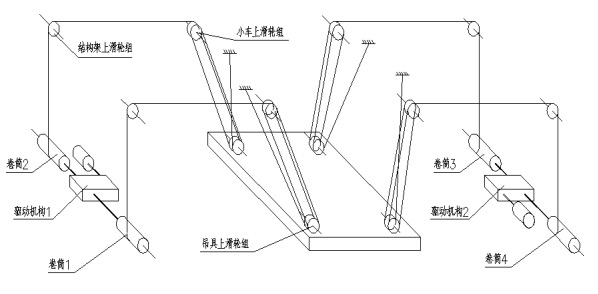 图1 “四卷筒”组合驱动原理示意图