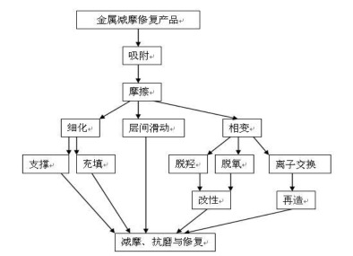 利用机械设备的润滑系统,将以功能材料为主要成分的摩安金属减摩修复剂介入到机械摩擦副;在摩擦副表面相对运动的过程中,利用既有的载荷、速度、温度等工况条件,金属减摩修复剂中的功能材料与摩擦副表面材料发生机械、物理、化学等综合作用,使表面的材料特性、表面形貌得到改性和优化,从而实现减少摩擦、降低摩擦损耗、节约机械设备能量消耗的效果。